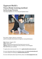 Admissions:PONTEDERA - ITALY 02/05 to 05/05 | 08:30am - 01:30pm "Voice and Body" Molik_Parente Workshop
